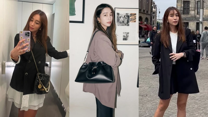 李珉廷在私下多套穿搭里都会选择搭配西装外套,包括搭配西装短裤营造休闲的造型、俐落又不失优雅的西装式洋装到Oversized西装搭配都有,透过西装外套独有的挺阔线条,整体看起来精緻又不失气场。