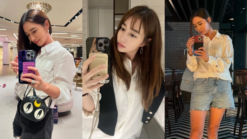 除了西装外套之外,白衬衫也在李珉廷的私服中有很大的份量,这个简单却能穿出清新优雅感的单品,李珉廷会拿来搭配休闲的牛仔短裤穿搭,让整体加入一点精心搭配的元素,或是利用黑色针织披肩增加穿搭层次,这种穿法乾净俐落,也是很值得直接複製的日常百搭技巧。